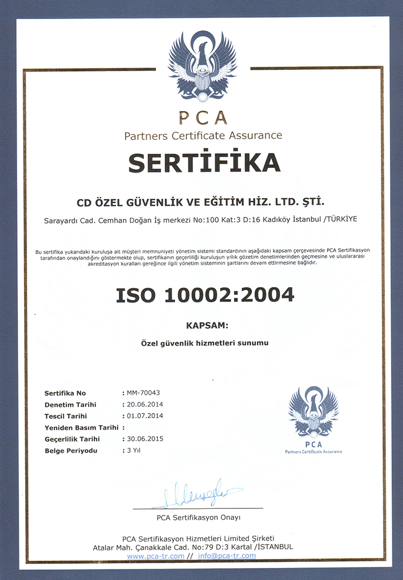 CD GROUP A.Ş. olarak, insanların yaşamlarını daha güvenilir, daha temiz, daha kolay, daha iyi ve daha güzel kılan lider bir firma olmayı hedefliyoruz. Dünyada sürekli yenilenen güvenlik stratejileri doğrultusunda, insan hakları ve hukukun üstünlüğü ilkesine bağlı kalarak, toplam kalite anlayışının hakim olduğu bir güvenlik kavramını öne çıkararak, personel çalıştırılmasına dayalı özel güvenlik hizmeti vermekteyiz. İşletmelerin özel güvenlik personeli ihtiyaçlarını karşılayarak, kuruluşların ana faaliyetlerini gerçekleştirmelerine olanak sağlamak ve etkin, güvenilir, profesyonel güvenlik hizmetleri sunmak misyonumuzun temelini oluşturmaktadır.